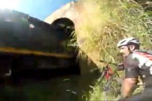 Relatively terrifying Facebook video of two Brazilian mountain bikers trying not get run over by a train as they unwisely ride through tunnel.