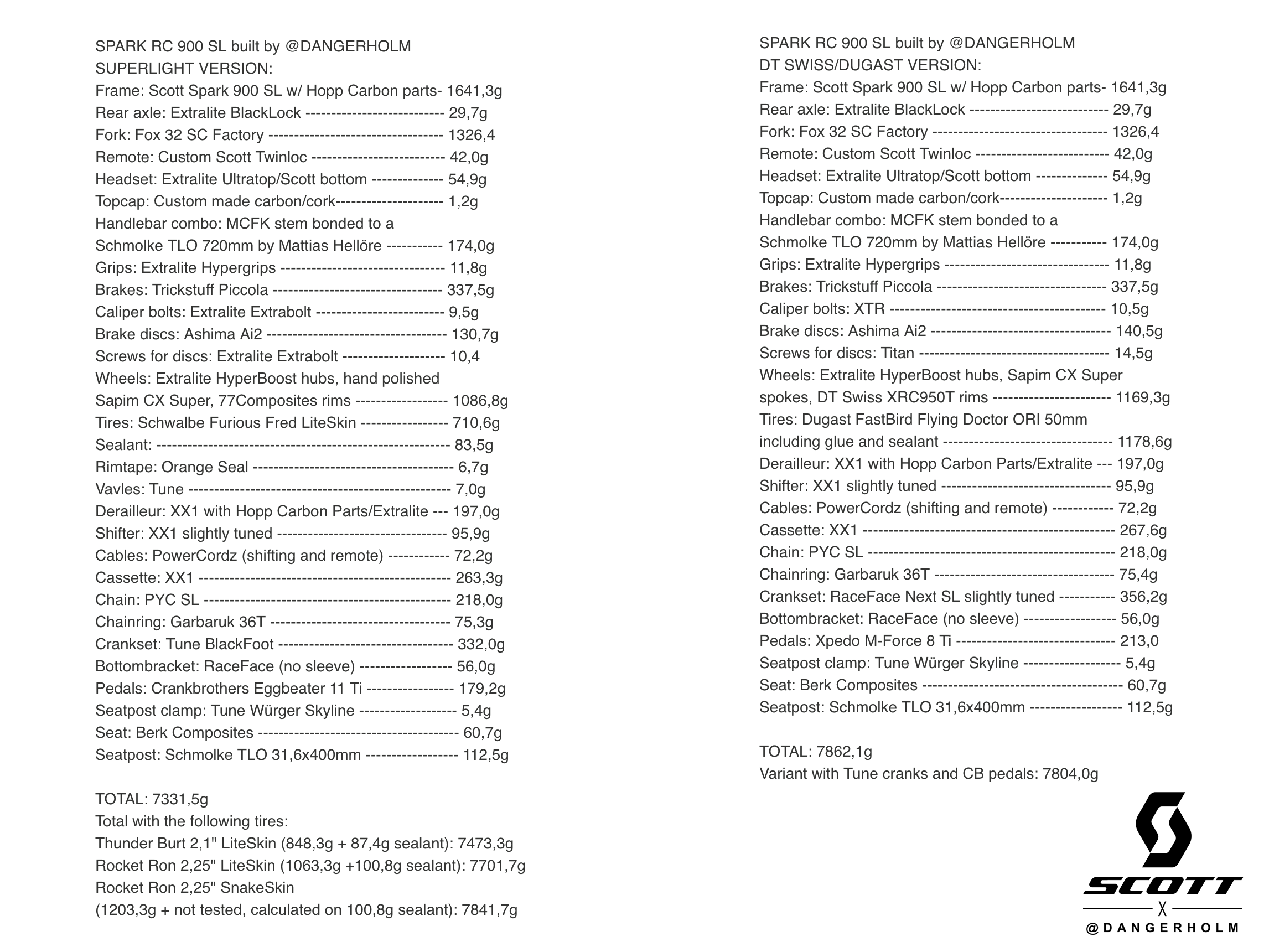 Working in a bike shop in his native Sweden, Gustav has taken two already light frames; a Scott Scale hardtail and a Scott Spark RC full suspension frame and endowed them with his magic to produce bikes that almost defy belief.