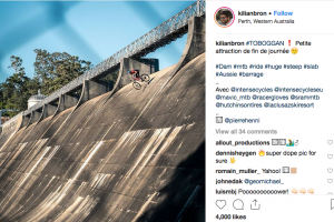 French freerider Kilian Bron is facing trial by Instagram after one of his posts showed him riding down the face of a dam in Western Australia.