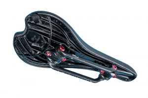 The Trian Enduro has something you won’t find on any other saddle — elastomer shock absorbers that sit between the carbon rails and the saddle body.