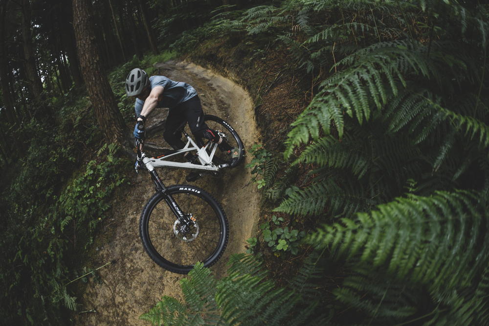 It’s interesting that there isn’t a single carbon component on the Stage Evo. And, at 13.83kg for the size L bike, it’s just just over one kilogram heavier than the full carbon YT Izzo Pro we featured last month. It showcases some of the best British components too, like the new Burgtec Enduro bar and stem. Yes, we’ve criticised Hope brakes for their lack of power, especially on longer travel bikes, but the Tech 3 E4 brakes on the Stage Evo felt like a great match. With reach and bite-point adjustment, getting the lever feel just so is easy, and best of all it never changes, so there’s no second guessing when the brake is going to kick in. Modulation is also first rate, so feathering the brake on a tricky off-camber section of trail doesn’t result in an immediate loss of traction. Due to the raw speed of the Stage Evo we used the multi-release feature on the 12-speed XT shifter to drop down two gears at a time more regularly than normal, testament to how efficiently it pedals. Orange has nailed the tyre specification too, with the Maxx Terra 3C compound Minion DHF providing great cornering traction, while the dual compound DHR II keeps the tempo high when covering ground. This combination also helps balance cornering traction front and rear with the longer front end, which helps make you feel perfectly centerted on the bike.