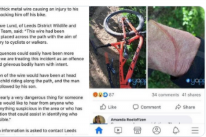 A 52 year old male was out mountain biking in his local woodlands on Monday afternoon when was knocked off his bike by a piece of wire strung across the