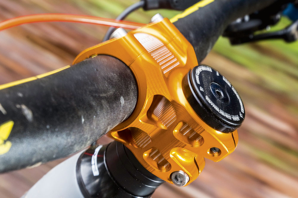 I prefer to have a big frame with a short stem. I really like wide handlebars because it’s more stable when it’s rough, but I have to keep it not too narrow, but not too wide, because we are always riding between the trees.