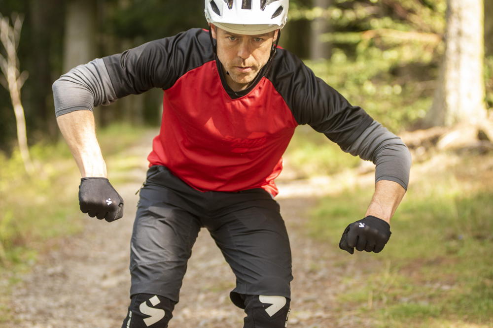 As these articles progress you’ll hear us talk about using your hips and knees to influence your balance and change of direction. The easiest way of getting into this is to think about centring your body position around your bars, forks and front end of your bike. That means that as you turn the bars from left to right, your whole body from your head and shoulders right down to your knees and hips follows. You’re not trying to twist your body. Almost the opposite. You’re trying to make a shape that is consistent with the front of your bike. Your neutral riding position will rarely deviate from a strong, stable shape that is centred around your bars.