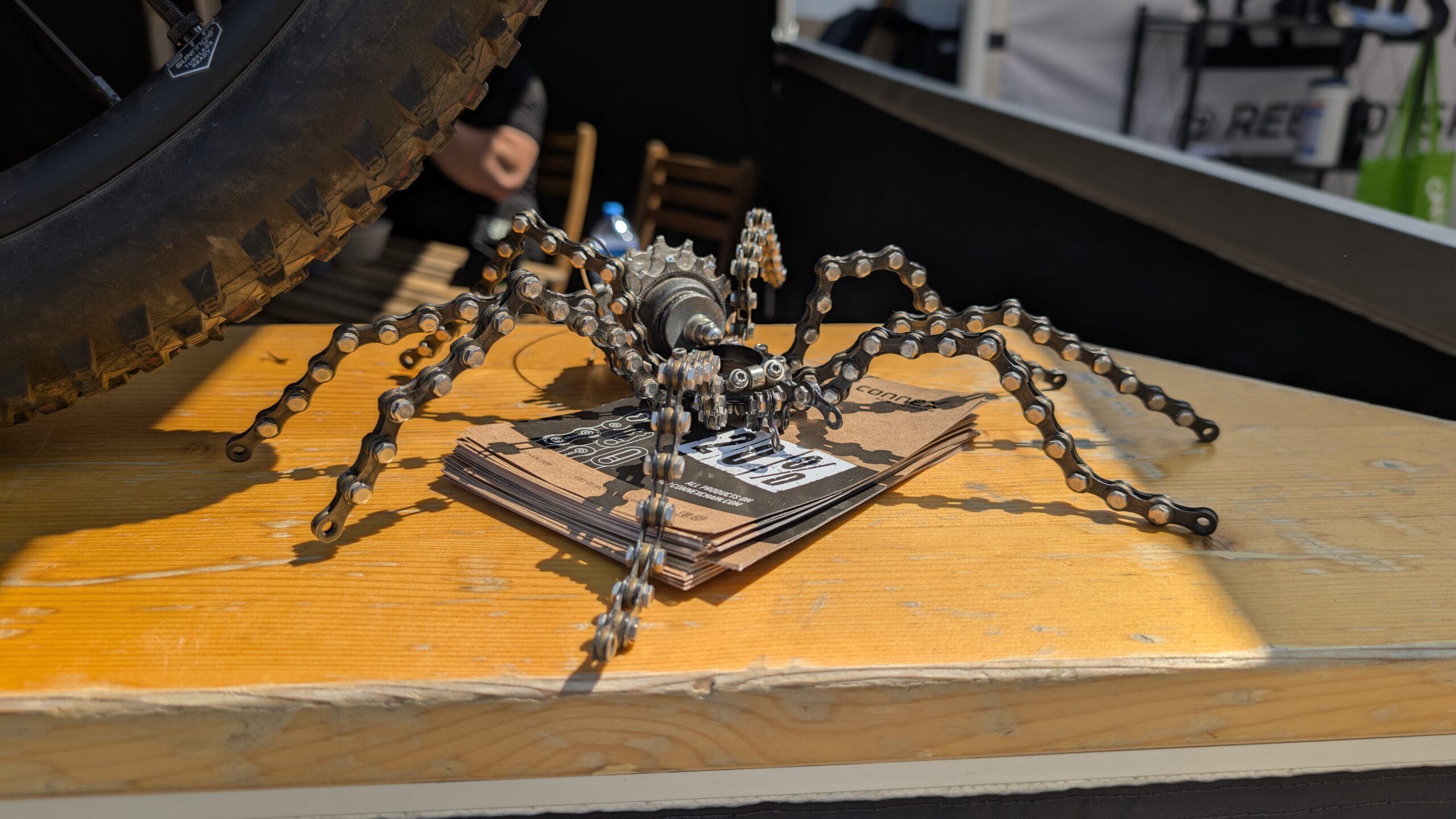 This spider made from bike chains caught my eye at the Connex stand. Pretty cool, don’t you think?