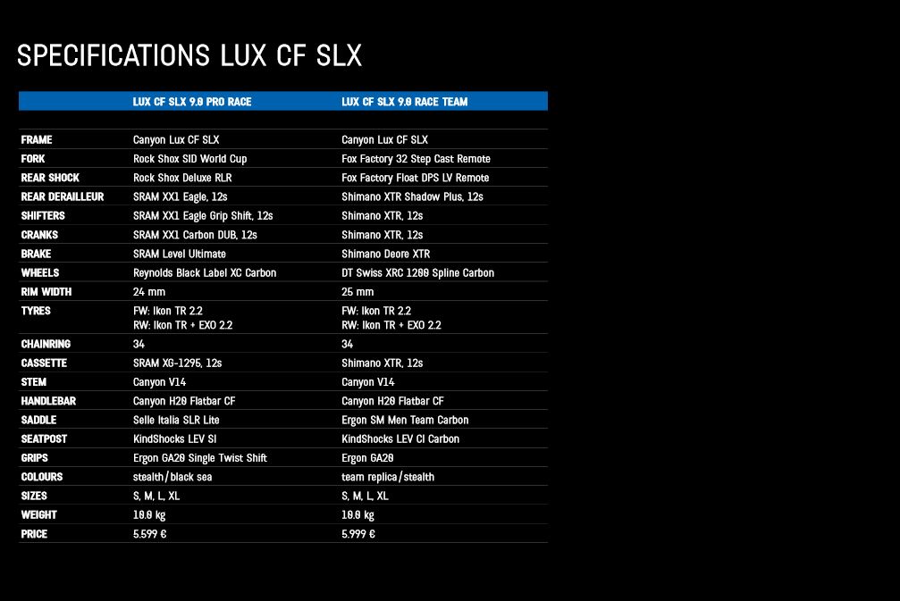 We’ve been sent the rather special Lux CF SLX 9.0 Pro Race to smash around the trails, so expect a write up of our first impressions pretty soon.