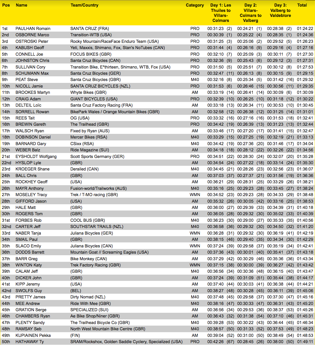 It would be tight at the top today, with only three seconds separating the top 2 Pro Men on the day’s four stages and only 12 in the General Classification. Tracy Moseley has amassed over a 3 minute gap overall on second place Tanja Naber, with today having a strong showing from Emily Slaco in the stages.