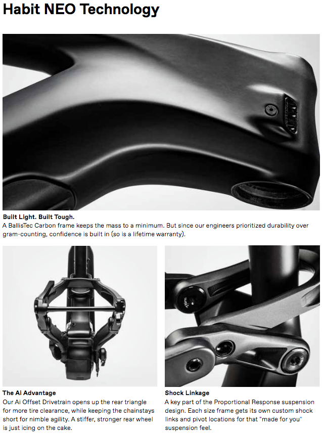 The new Moterra is built to thrive on rugged descents and technical climbs in the high mountains but is happy to play wherever it’s pointed. The Habit NEO is the snappy, lively, do-it-all trail machine that ramps up the fun factor on fast, flowy singletrack, while having the chops to tackle anything the mountain has to offer.