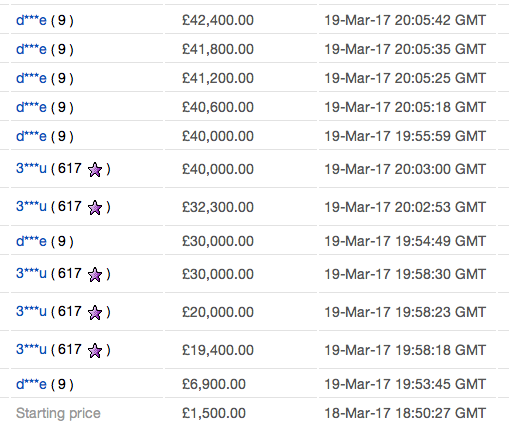 Is it just the seller’s ‘mates’ trying to foul up the auction for a laugh? Or is something else more nefarious afoot?