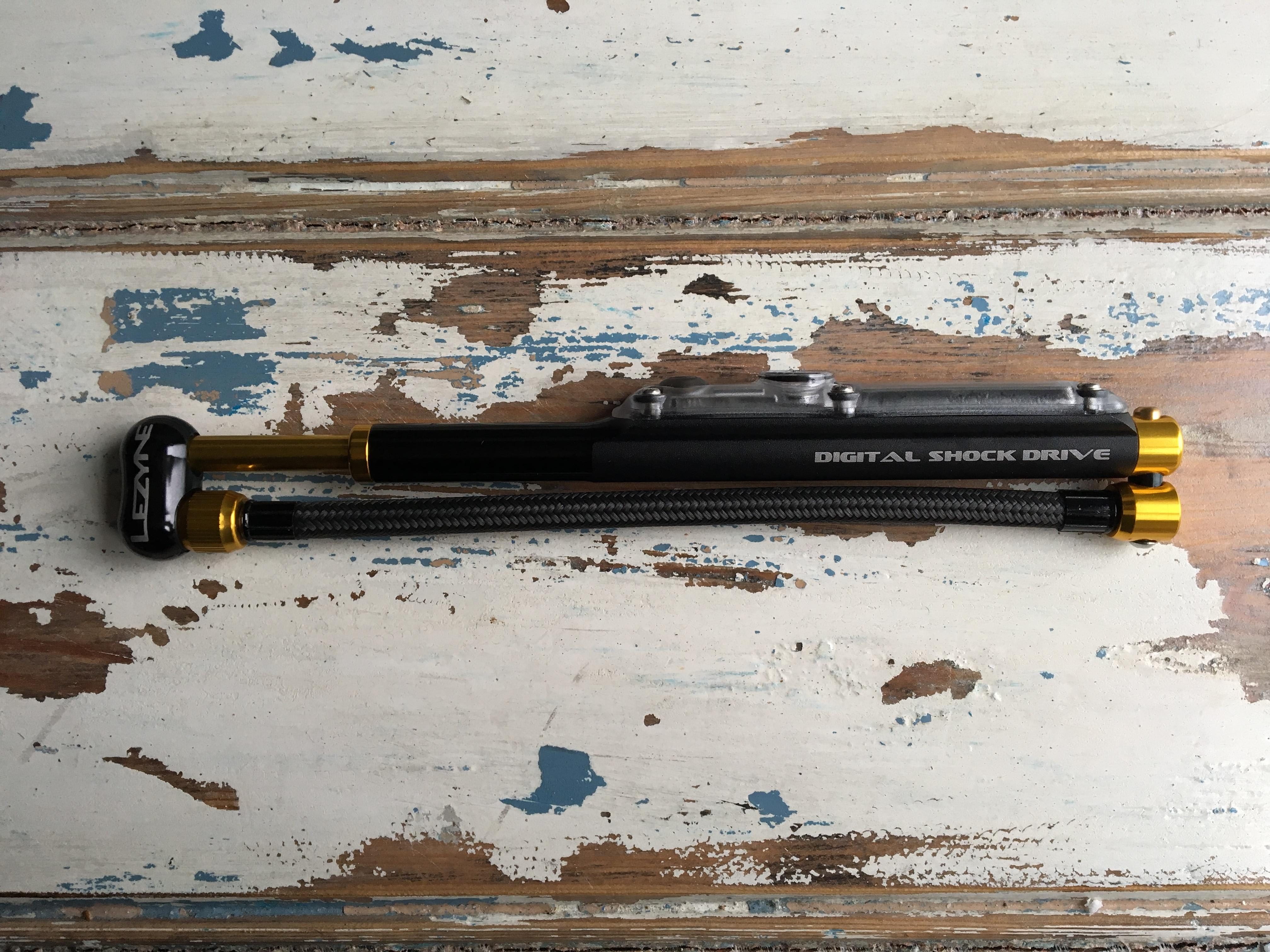 A classy looking, neat little shock pump. Has the added bonus of a highly accurate digital readout that goes up to 350psi. It even looks like a part from a seventies JPS F1 car with all the black and gold. Featuring a braided hose for reliability. It’s small enough fit unobtrusively into a pack…