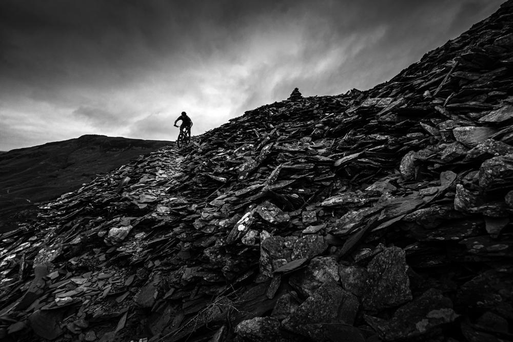The Lake District’s beauty is sometimes only matched by its post industrial brutality – an abundance of huge slate spoil heaps and open quarries litter the countryside, offering a technical challenge for both bike and rider. Against an ominous sky, Neil Hamblin picks up the gauntlet and surfs his way down this loose, barely defined and constantly changing sea of slate. Come and have a go if you think you’re hard enough…