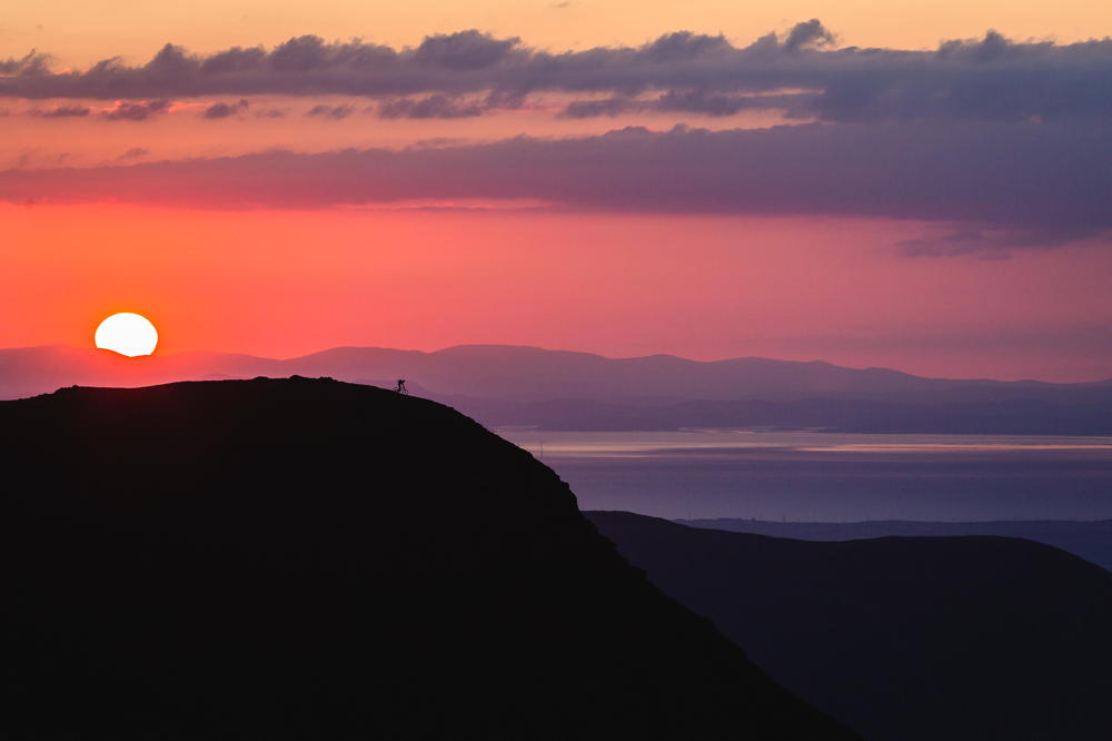 Throughout the day the sun hovers in the sky, motionless. Approach the the end of the day and it nears obstacles, such as the horizon. It fascinates me just how quick the sun or moon passes the horizon when watched closely. This shot tells a moment where I soon realised just how fast we rotate around the sun. Phone in hand, frantically trying to position the rider as the sun races to meet the peaks north across the Solway Firth.