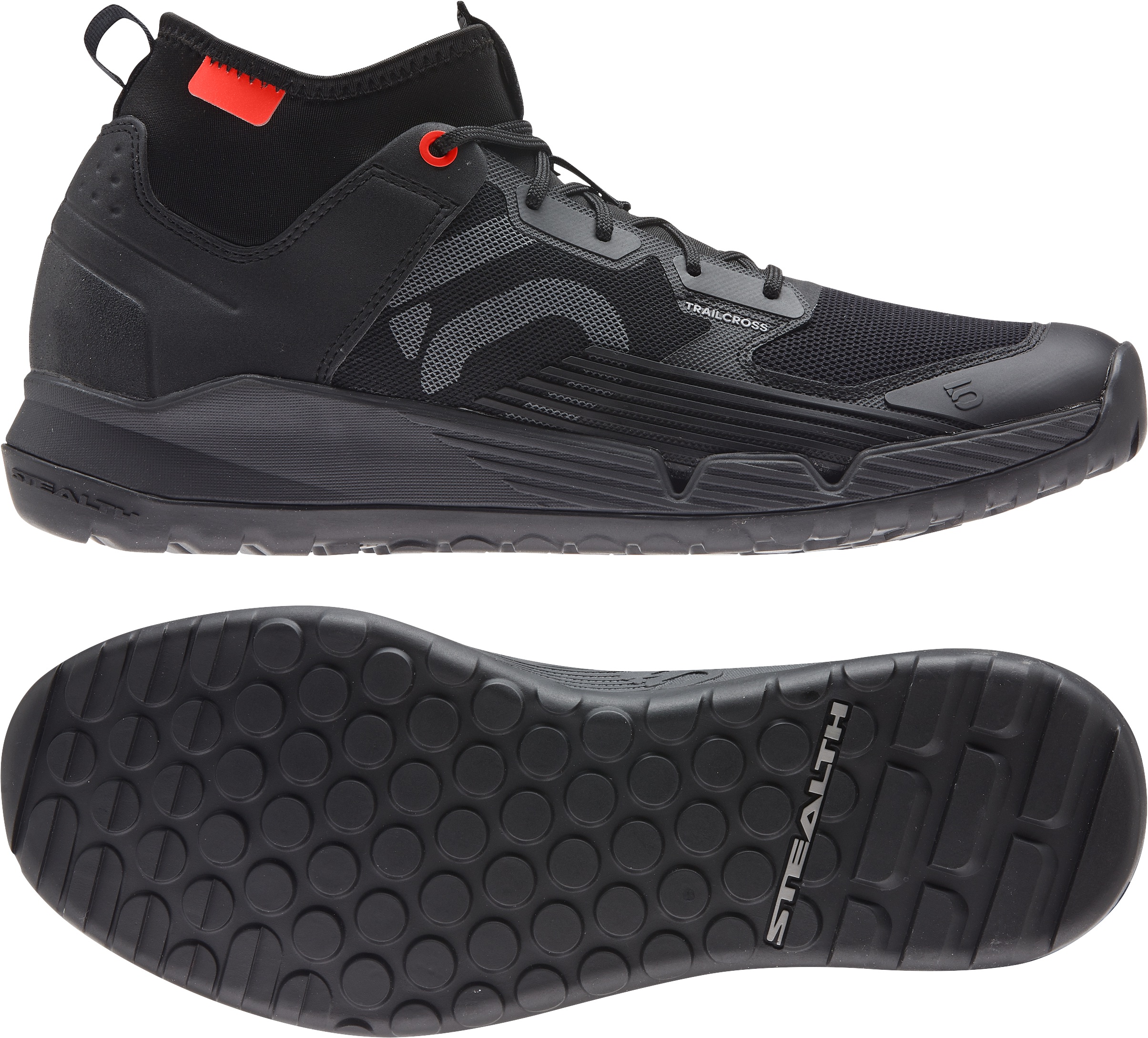 Five Ten is dead. Long live ‘adidas 5.10’. We think. Regardless of what they’re going ot call the brand from on, the new Trail Cross XT is a very interesting shoe. A totally new model from Five Ten – sorry, adidas 5.10. They explain: “Trailcross XT, as with the [Five Ten Trail Cross LT] and Mid Pro, was built from the ground up, starting with the Five Ten dotted outsole for flat pedal performance on the bike. This was then refined with hiking in mind, bringing the additional ridged grip to the toe and heel. In addition to the Trailcross LT, the XT has a closed off mesh cuff design allowing for use in more extreme conditions. With the need for the shoe to provide all day comfort but also deliver across the contact points on and off the bike, the mid-sole EVA technology from the TERREX range was slimmed down, providing the necessary comfort without losing the all-important pedal stability. Similar to the Trailcross Mid Pro, the XT utilises a foam backer in the upper construction for added stability. Additionally, the drain ports found in the Trailcross LT model have been closed on the XT to keep debris out.”