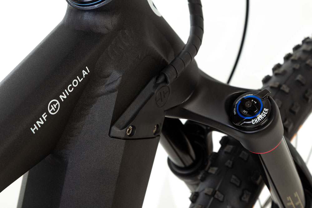 The rather striking looking new HNF-Nicolai is designed to offer a “combination of full-suspension eMTB technology for comfortable off-road use and low-maintenance suitability for everyday use.”