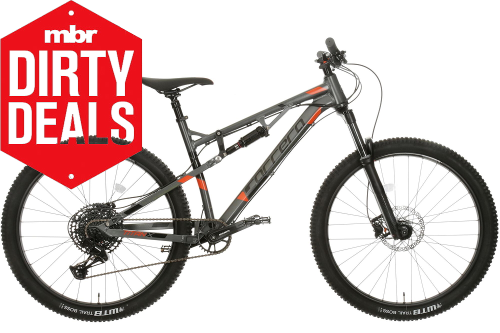 Save £150! You cna read all about this bargain bouncer bike in our recent article all about it: Carrera Titan X: £850 for a 130mm full susser with disc brakes and dropper post?
