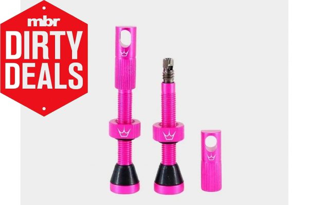 “Made from lightweight anodised aluminium, Peaty’s tubeless valves are a universal 40mm length and fit most tubeless rims including carbon, Enduro and DH rims. The large soft rubber base easily creates an airtight seal on valve holes up to 8mm diameter. The integrated valve core remover caps make removing the valve and topping up with sealant a breeze when in the workshop or on the trails. Valves for Life!” View Deal at Tredz