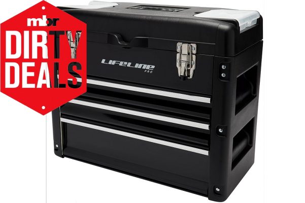 “The Pro 3 Drawer Toolbox is the perfect storage solution for stashing your tools in style and giving them the home they deserve. It comprises of 2 shallow drawers, 1 deep drawer, a tool tray and another large storage compartment. All the drawers are lined and the work station has a handy locking system with the closure of the lid preventing the drawers from opening, ensuring your tools safe in transit. To top it off, on the lid are two detachable compartment boxes for keeping all your small essential tools safe.” View Deal at Chain Reaction Cycles
