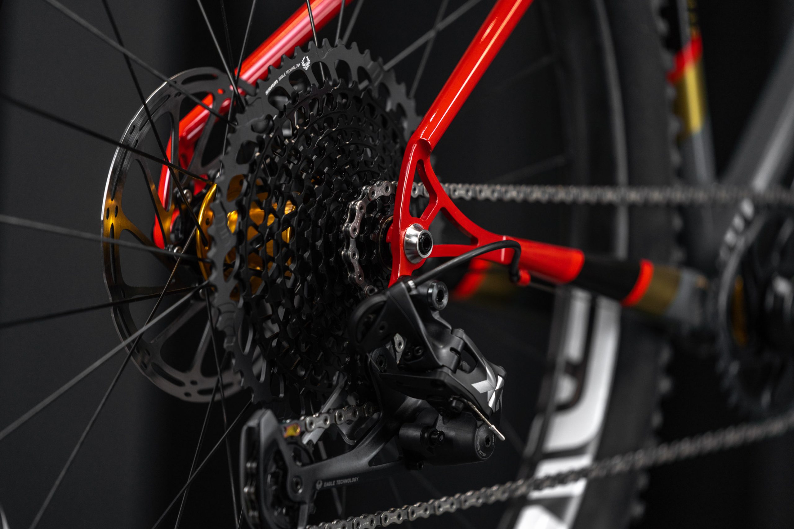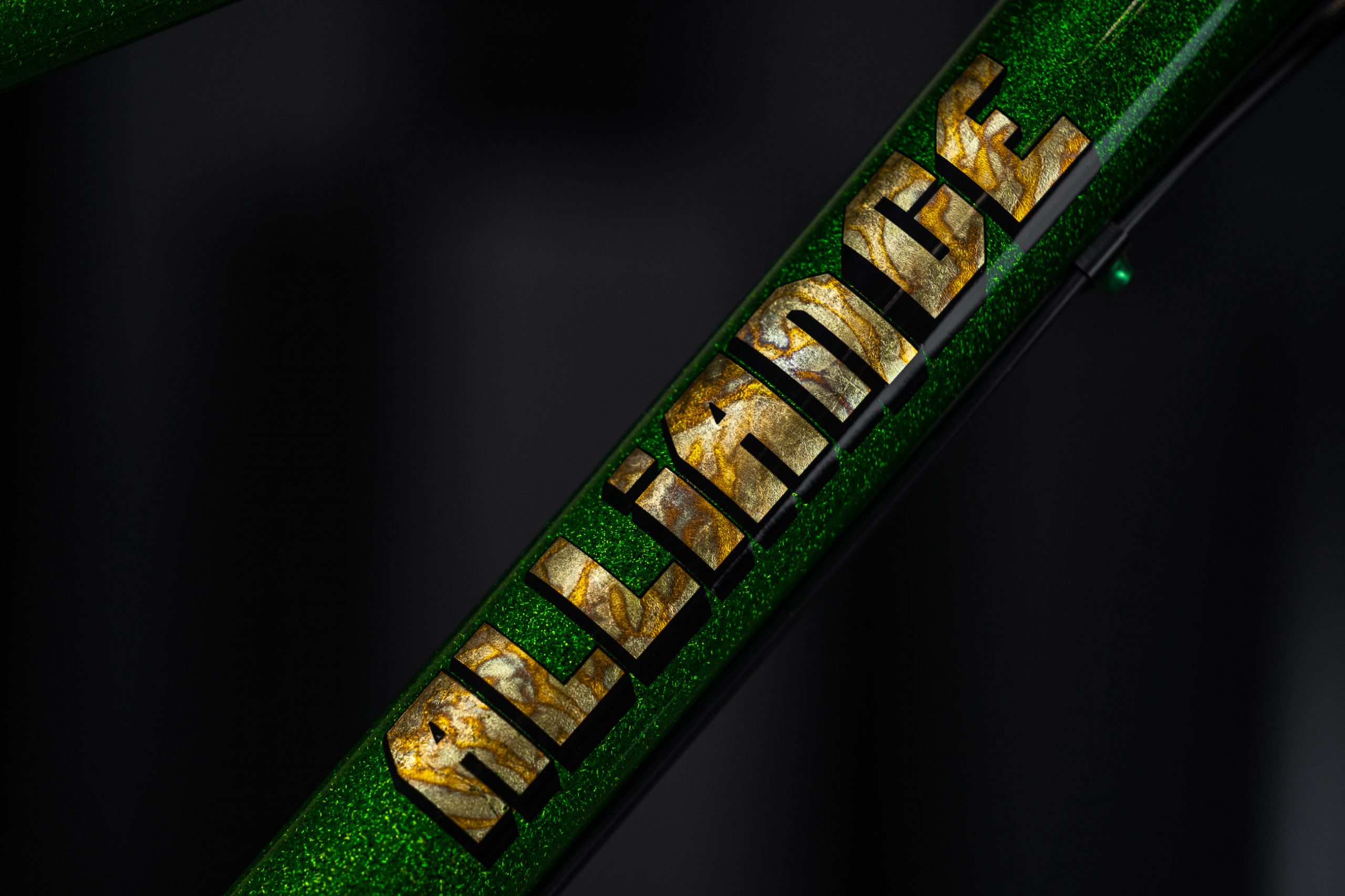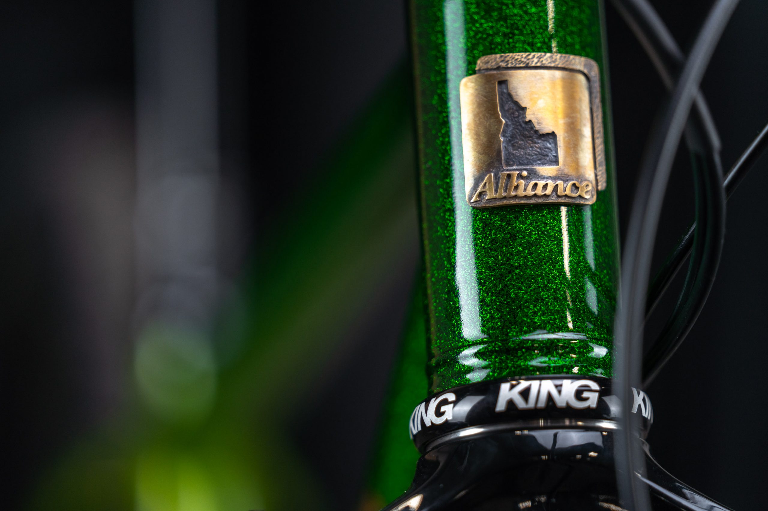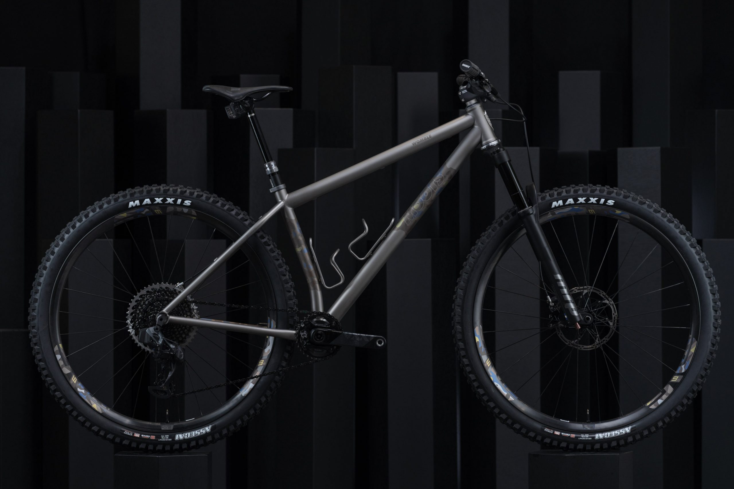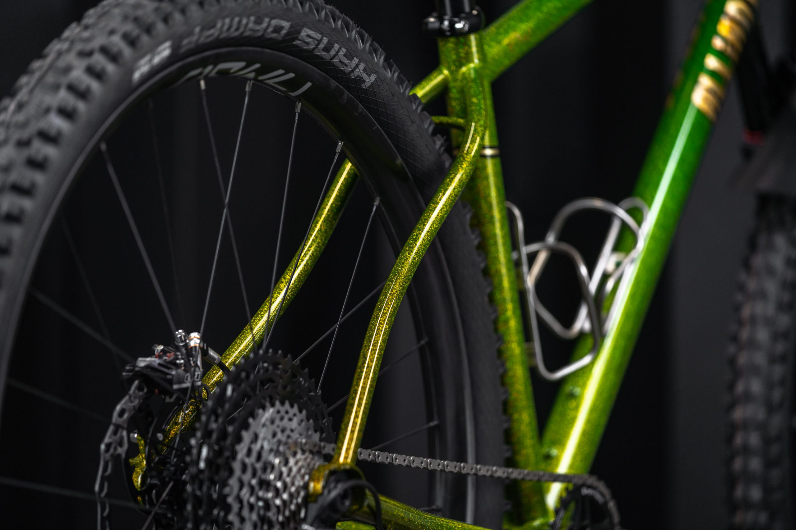 One of the handful of hardtail mountain bikes as part of the show, Alliance’s titanium trail bike is designed around the Rockshox Pike 130 fork and tire clearance up to 2.6 tyres. It’s built up with ENVE’s M6 bar and stem in addition to ENVE AM30 rims on Onyx hubs. The paint is a real head-turner with a bass boat glitter flake for all the flash in the sunlight.