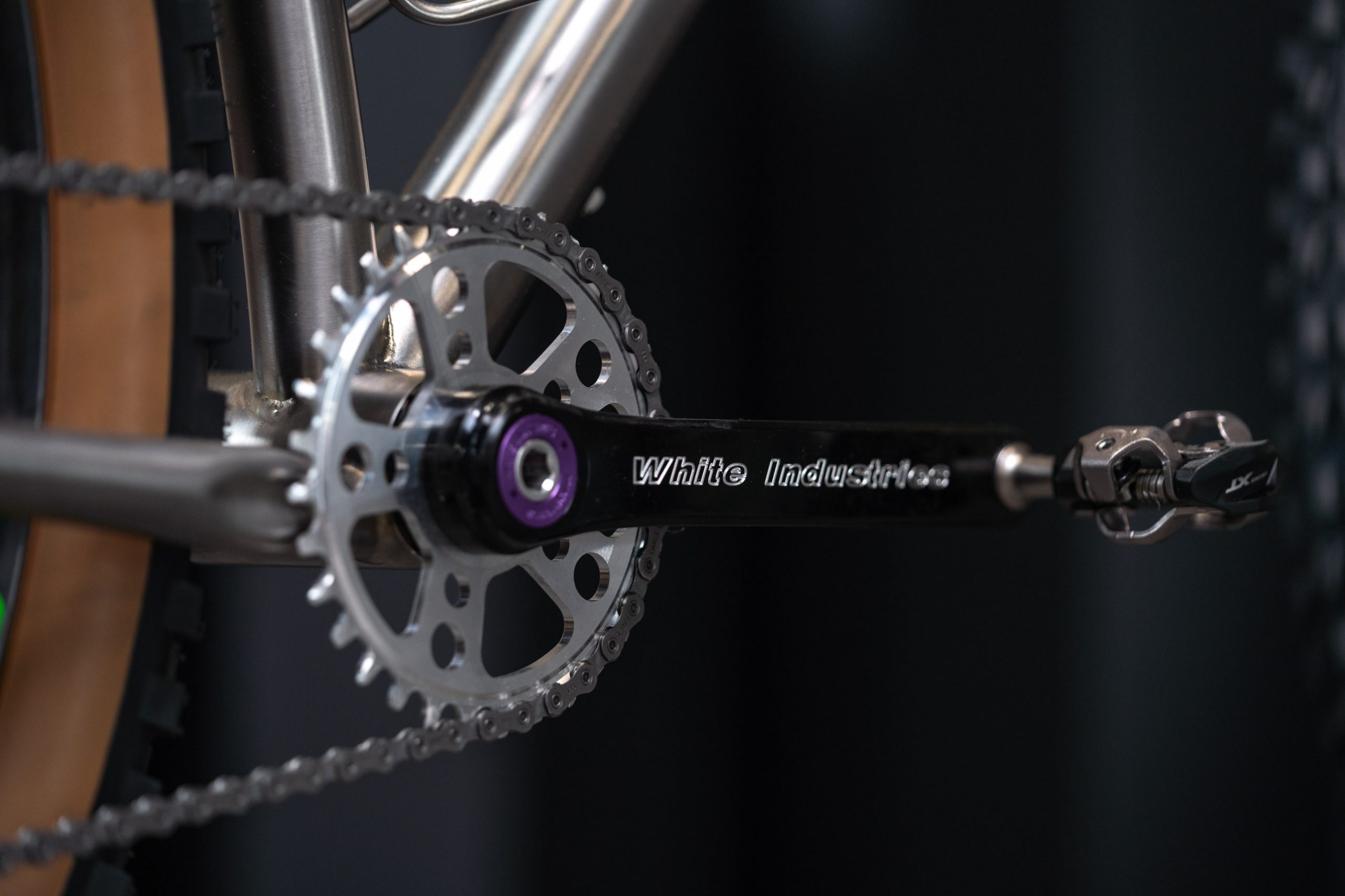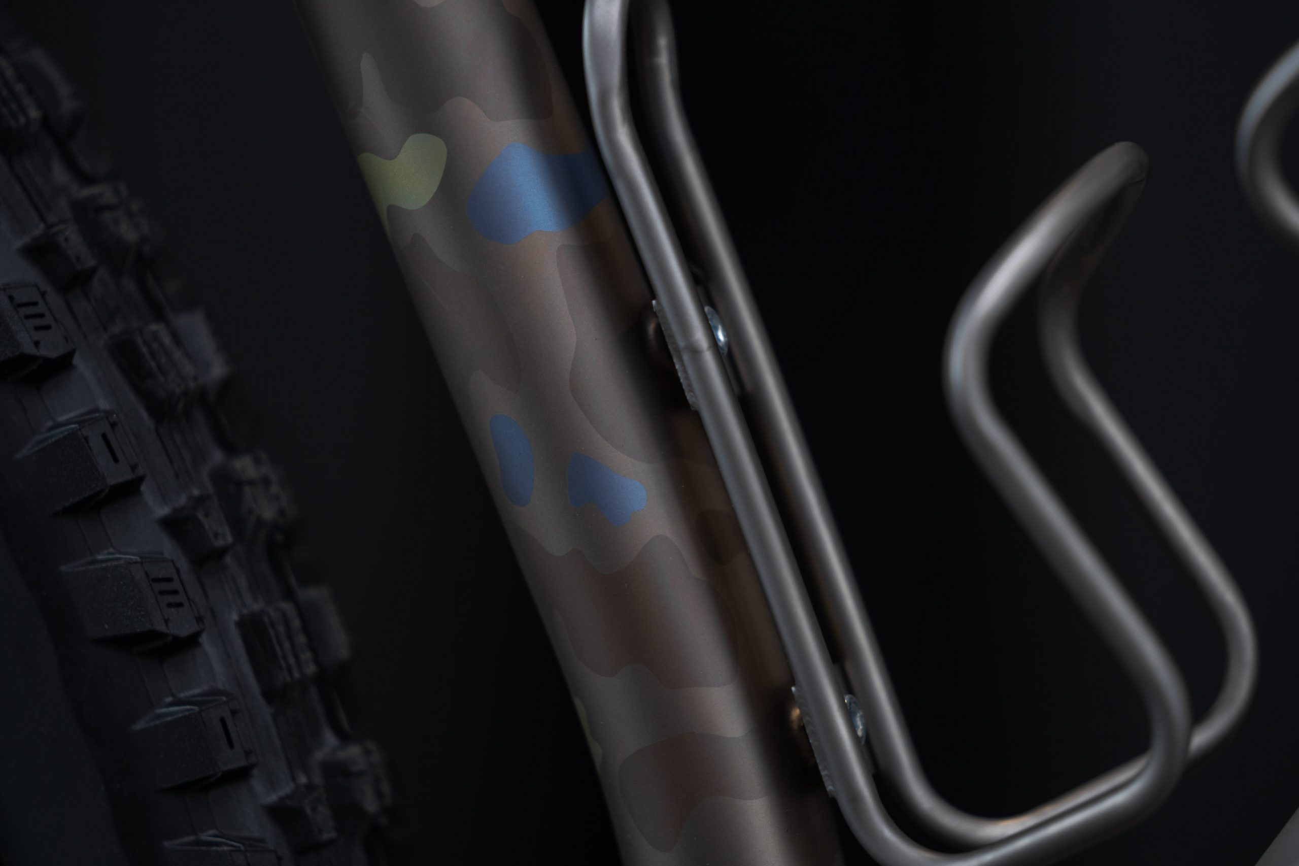Curtis Inglis went with the look and feel of the Twin Funduro and a new material, titanium. Carrying the same smooth lines throughout the bike that Retrotec is renowned for, the Twin Funduro achieves clearance for up to a 2.6” tyre. The mismatched component colors are thanks to the bike industry’s lack of availability, which provided Curtis the opportunity to have some fun with the mix-and-match approach.