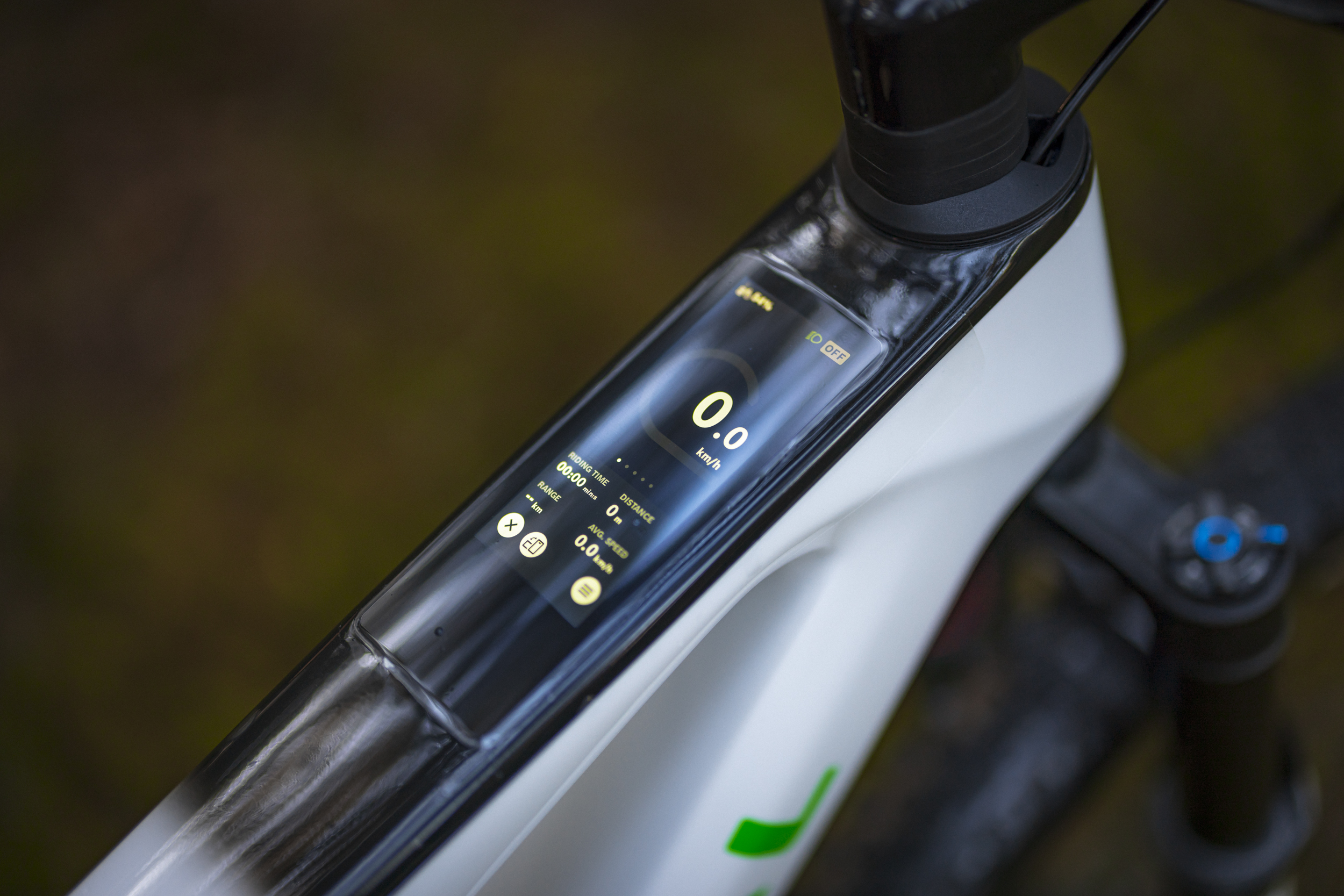 Front and centre in the top tube is the Smart Dashboard display with colour touchscreen data and mapping thanks to the built-in GPS. Forestal compares it to the likes of Apple CarPlay, where the waterproof, glove-friendly display works with third party apps to increase the enjoyment and enhance the experience.