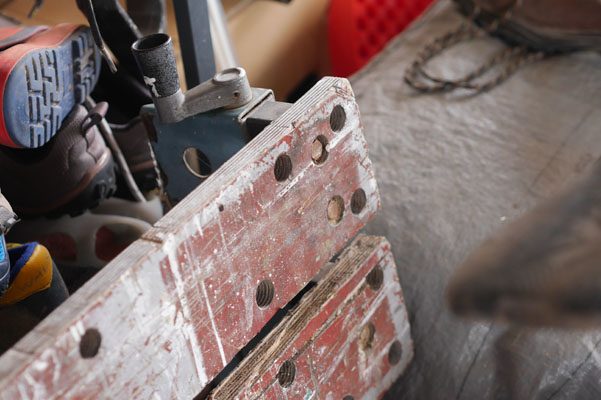 AKA a soft-jaw vice on legs. Ideal for holding dropper post stanchions. Also very useful for pressing in new shock bushings and, if combined with canny use of a socket set, can be also be used to removing stuck shock bushings too.
