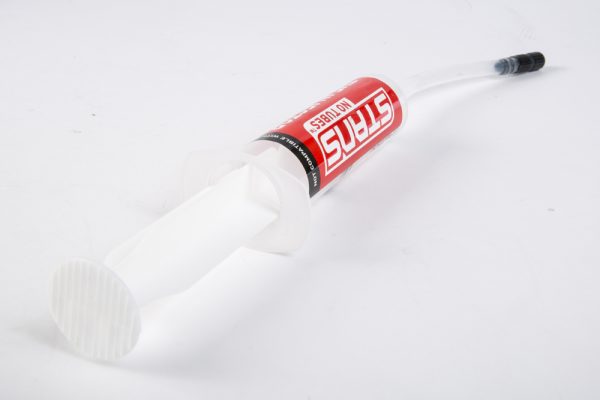 Top up the sealant without having to remove the tyre with The Injector from Stans No Tubes. You can even suck up the liquid sealant (worth it because it’s so expensive) if you’re swapping tyres for the winter. The dual threaded plastic adapter fits both Presta and Schrader valves.