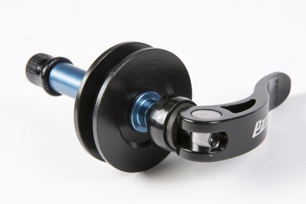 If you remove the wheel and hook the chain round Part Tool’s Dunmy Hub, you can clean it without contaminating the disc rotors or getting cleaning spray near the bearings. The roller slides backwards and forwards as you run through the gears and can even run on a 12mm thru axle.
