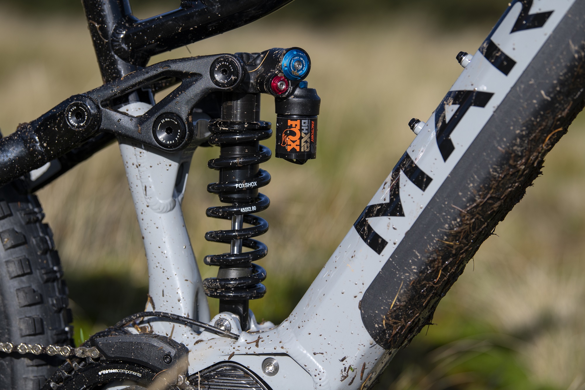 Marin has equipped both bikes with decent specification components. The dearer £5695 E2 runs a Fox 38 Performance Elite and Float DHX2 Performance Elite coil at the rear.
