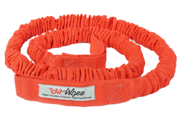 There are two great and unique things about the TowWhee: it’s elasticated, and it’s quick to install/remove on the trail. It lets you tow your kid up the hill so they can enjoy the descents and don’t have to suffer on the climbs (and so you don’t have to suffer any grumbling on the climbs either). The elasticated ‘bungee’ nature of the strap means that there’s no jerking of the towed rider going in, and there’s also no nasty jolt as the TowWhee reaches full extension (180in, static length is 56in).