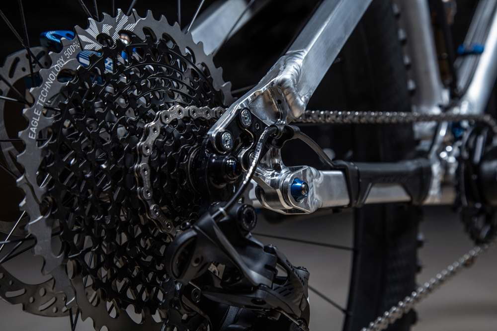 The SATURN 14 is finalised with space for a full-size bottle cage, ISCG splines to mount a chain guide or bash guard, and our full external routing. Why not internal routing? The only reason we can find for this is that ‘it looks nicer,’ and it can protect housing put in the line of fire from the ground and rocks. Our routing is fully external, placed out of harm’s way, and the rear brake and derailleur housing can be replaced without disconnecting or removing any other parts of the frame – the way it should be. As the Saturn is designed as a lightweight machine, we also use titanium bolts at the Horst Link connection, and for shock mounts, this saves a few more grams and looks cool as a side-effect.