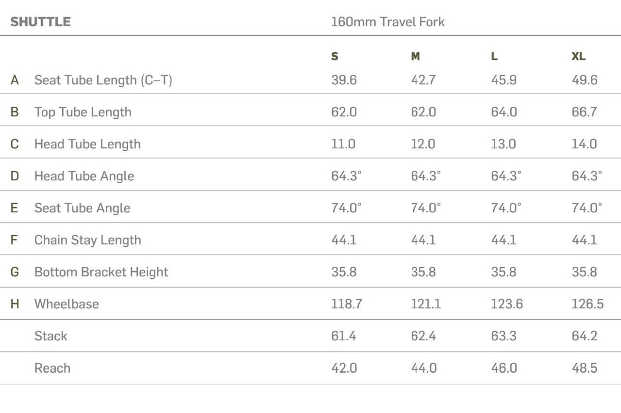 With a 140mm shock and 160mm fork, the new Shuttle sits a 64.3° head angle and on a size large, you’ll have 460mm of reach. That makes sit nearly a whole degree slacker up front and with a 5mm lower bottom bracket, cornering agility should be superior to the previous Shuttle.
