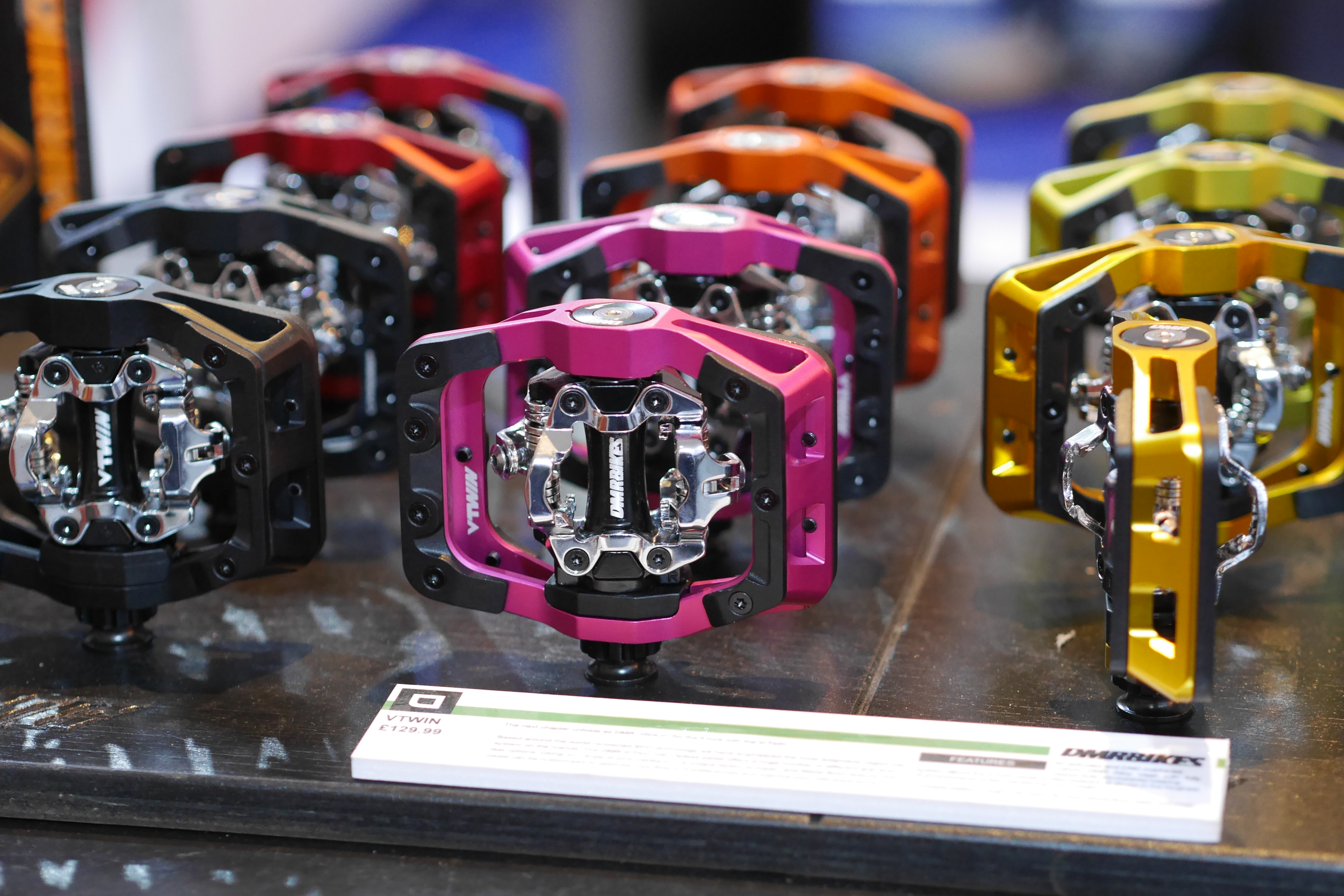 Issi importers 2Pure deserve a shout-out for putting together by far the most stylish display of their wares at Core Bike Show. This was their backlit glass-topped table loaded with Issi pedals. Issi pedals are arguably more known on the road scene but they are doing some neat looking caged-clipless style pedals for mountain bikes now.