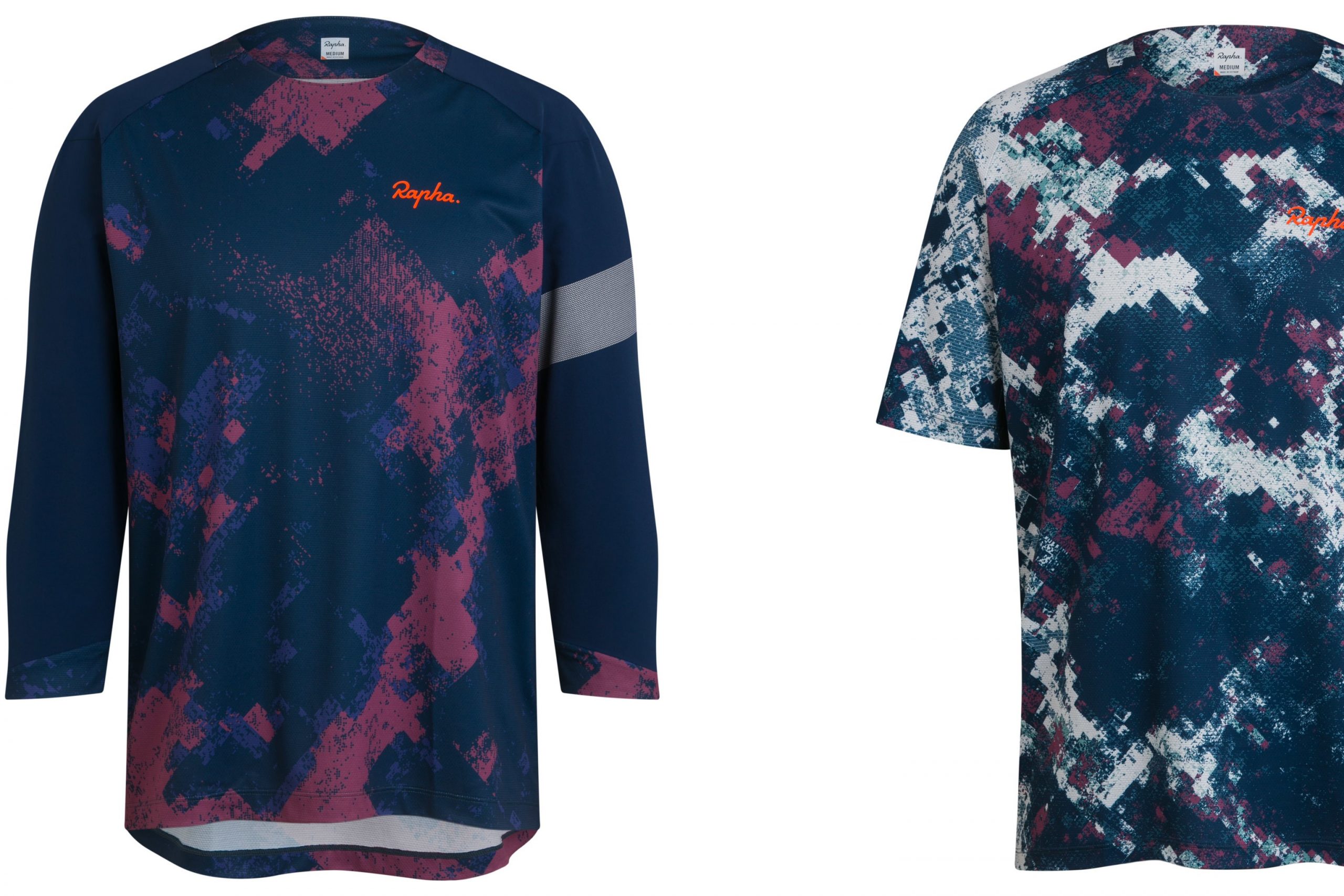 Rapha’s Digital Woodland range includes both the short and three-quarter sleeves technical trail jerseys, for men.
