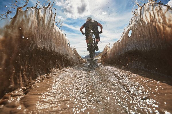 Laurence Crossman-Emms: “Blaenau Ffestiniog was once described as the wettest place in Wales, this is no lie. Even when the sun shines, the puddles are plentiful. I’ve always been attracted to their animations when struck by a bicycle at full steep. The tyres of Katy Winton making the perfect parting of this muddy sea. The combination of dynamic action and the silk-like curtains made me try each time more determined. There are always challenges when shooting bikes and water close up … don’t get run over and don’t get wet.