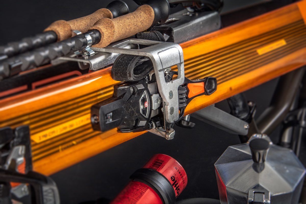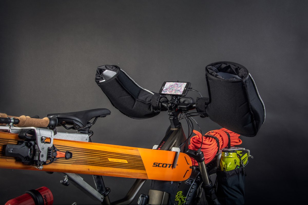 A bike can carry nearly everything, it’s more about how to fit, stabilize, protect and secure all this equipment. Our main goal was to minimize the use of ski straps and make sure you can clip on all your equipment in a minute. Who wants to start to strap all their equipment onto a bike in minus 15 with gloves on?