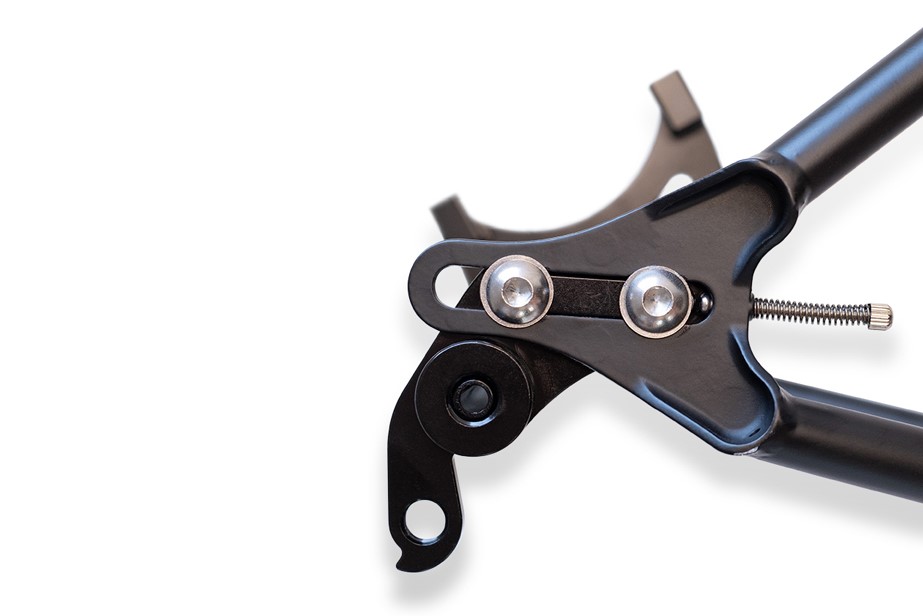 The rear dropouts can accommodate both the 12×142 and 12×148 axle standards, without having to use adaptors. Rapidé has cleverly used a 145mm median rear axle spacing, with chambered edges, that allows for 1.5mm of contracting or expanding flex, tensioned by deeper threads.