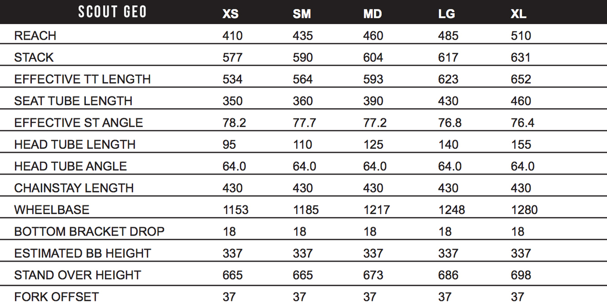 New Transition Scout: 20mm more travel, 28mm more reach (Large), 2.8° slacker head angle, 2° steeper seat angle, 5mm longer chainstays.
