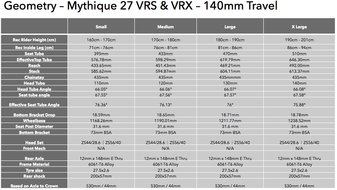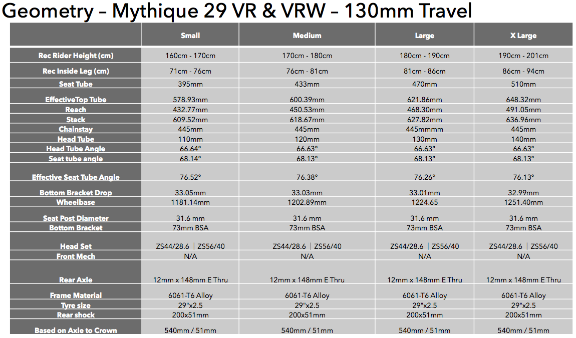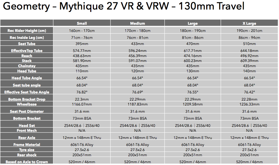 When we started developing the Mythique our main goal was to create the most accessible, capable and performance driven trail bike on the market. We focused on ensuring the Mythique used proven modern geometry, solid suspension kinematics and reliable components to achieve that goal. Using a solid alloy frame and proven horst-link 4-bar suspension design we feel that we created a truly accessible full suspension trail bike without compromising performance.
