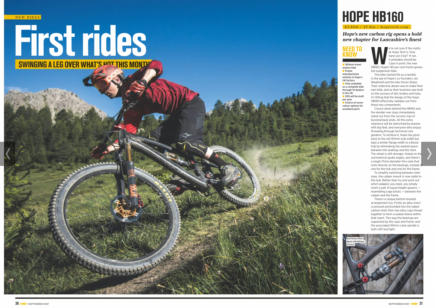 We take a turn on Hope’s hotly anticipated HB160 carbon enduro bike, ride Evil’s The Calling short-travel piece of exotica, the Merida Big Trail 800 hardtail and a BMC Speedfox 02 Two.