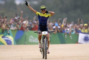 Sweden's Jenny Rissveds takes the win in the Rio Olympics Cross Country cycling at the age of 22