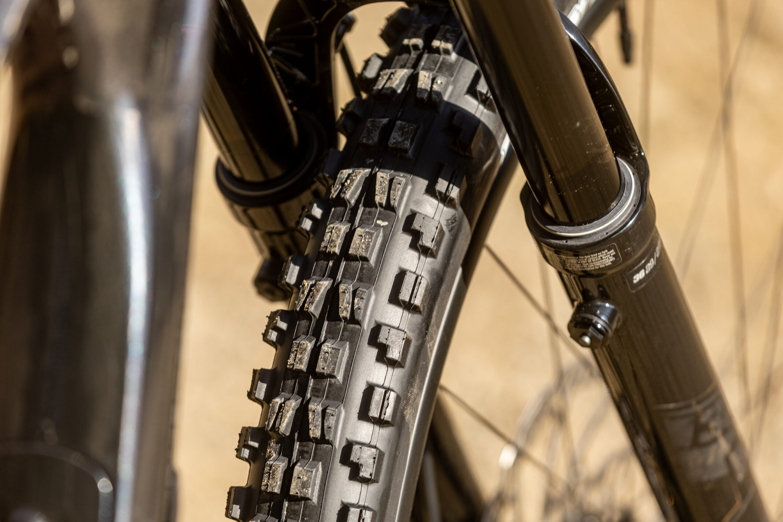 Why? It was occasionally scary how much the tyre could step out or surf on dirt when loaded and leant on hard. I know Minion DHFs used to be a classic, but tyre technology has moved on and it’s actually pretty bad now compared to the latest Conti’s and Schwalbes or Maxxis’s own Assegai.