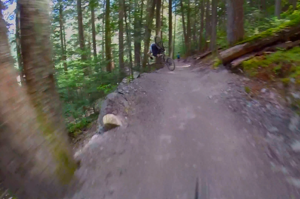 Watch this rider fall off the side of a trail in Whistler