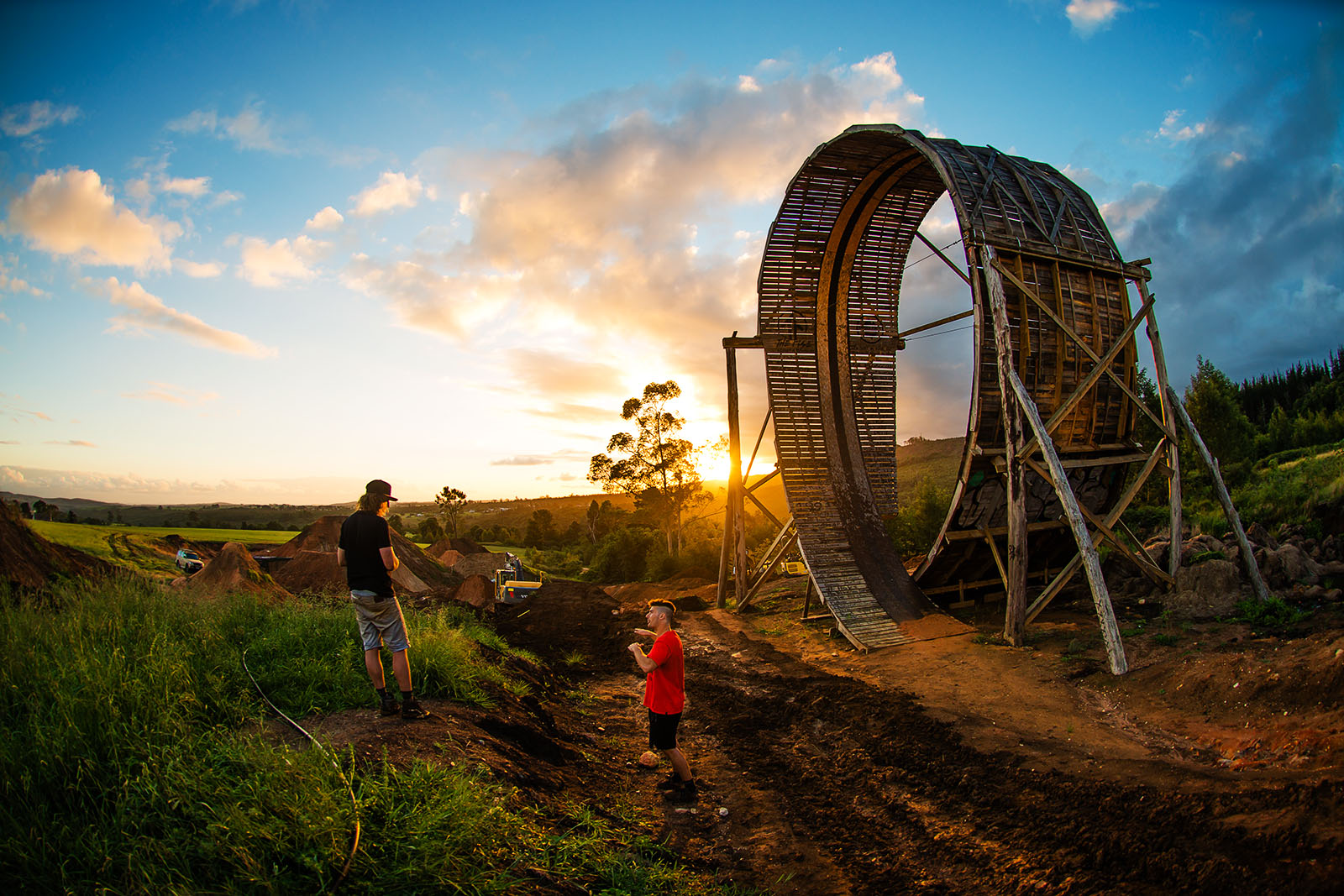 “The infamous giant step up now has 2 hipped landings on either side and the right line leads into a left hip on the last jump of the line, which looks absolutely insane. They are also busy with a long low jump over the run in to the step up, which will make for some spectacular shots with guys jumping over each other going mach1!