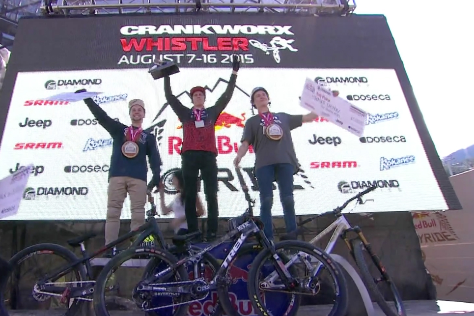 Brandon Semenuk won the 2015 Red Bull Joyride at Crankworx on Sunday…